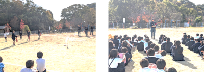 また、寄贈について紹介がありました。サッカーチームのロアッソ熊本様よりサッカーボールを5つ、プロ野球選手の大谷翔平選手よりグローブを3つ寄贈していただきました。子どもたちもとても喜んでいました。大切にみんなで使っていこうと思います。