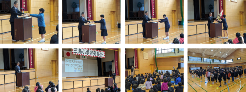 保護者の方々、地域の方々、たくさんの温かい応援ありがとうございました。また、片付けにも多くの方がご協力いただき誠にありがとうございました。そのようなすてきな地域の「三角」に誇りをもつことができるように、今後も職員一同、子どもたちと共に学んでいきます。