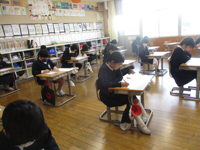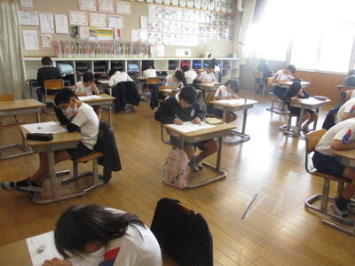 本日2時間目、全学級でファイナルテストに取り組みました。4月からの1年間すべてを振り返るとまではいきませんが、自分の学力がどの程度定着したのかを見る一つの材料です。1年生から6年生まで、真剣に集中している姿が印象的でした。