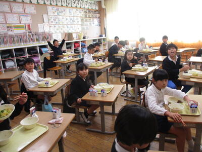 給食の時間、各教室を回りました。みんなもりもりおいしく食べていました。見ていて気持ちがいいです。給食センターの先生方、いつもおいしい給食ありがとうございます。