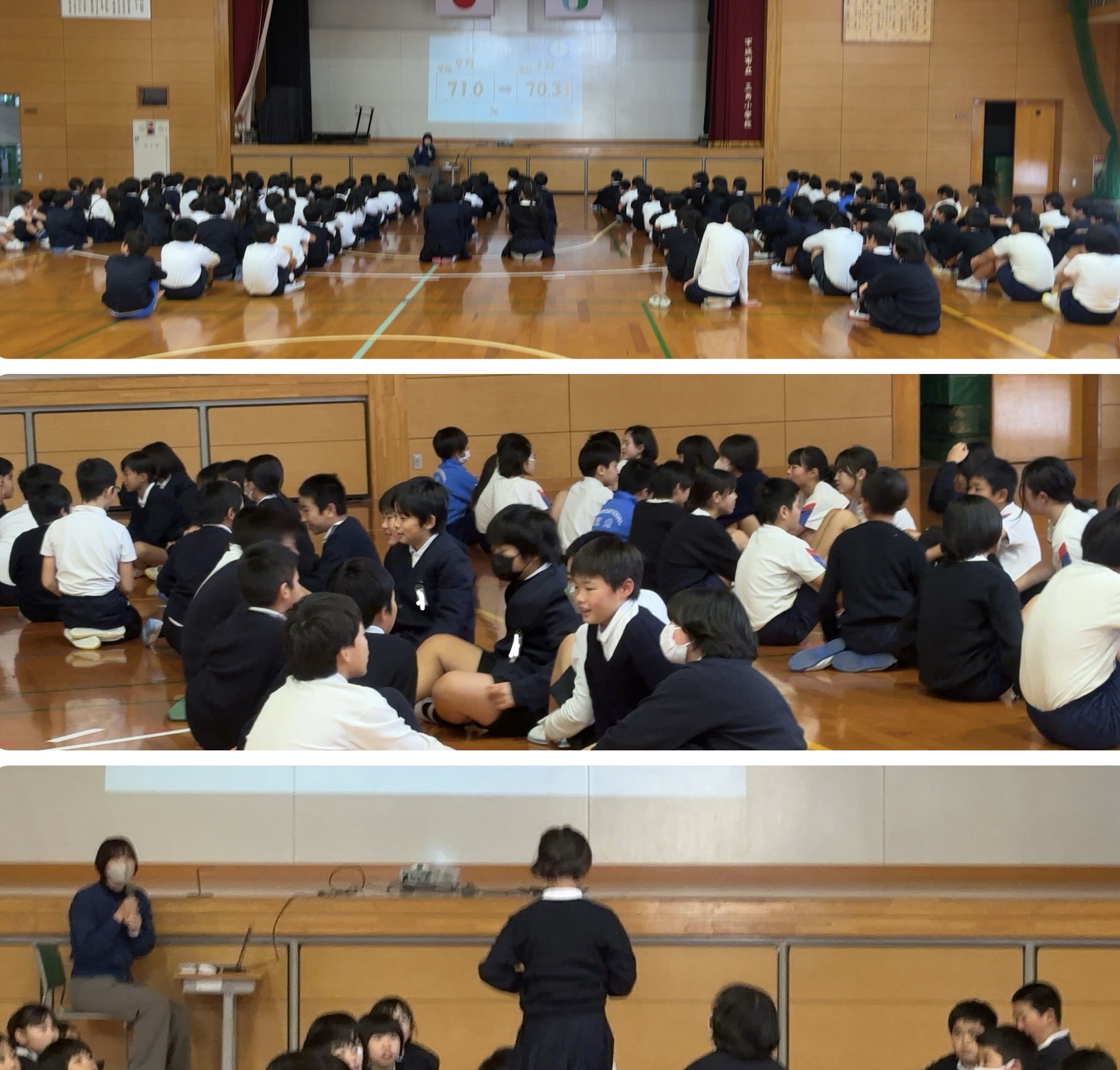今日の業間の時間に学校保健委員会が行われました。今回は朝ご飯と睡眠の重要性について全校児童で学びました。話し合いの場があったり、先生方の意見を聞いたりと楽しく勉強することができました。