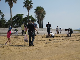 本日、晴天にも恵まれ「若宮海水浴場における海洋環境保全啓発活動」が予定通り実施されました。