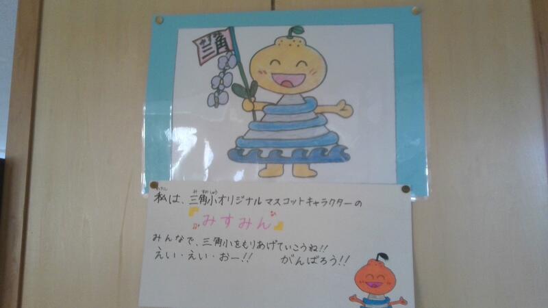 本格的に三角小オリジナルマスコットキャラクターが決定し、今学校内に「みすみん」を掲示しています。