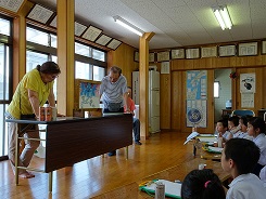 陣の水を管理されている千原国喜さんから、紙芝居等を使って、丁寧に分かりやすく説明してくださいました。