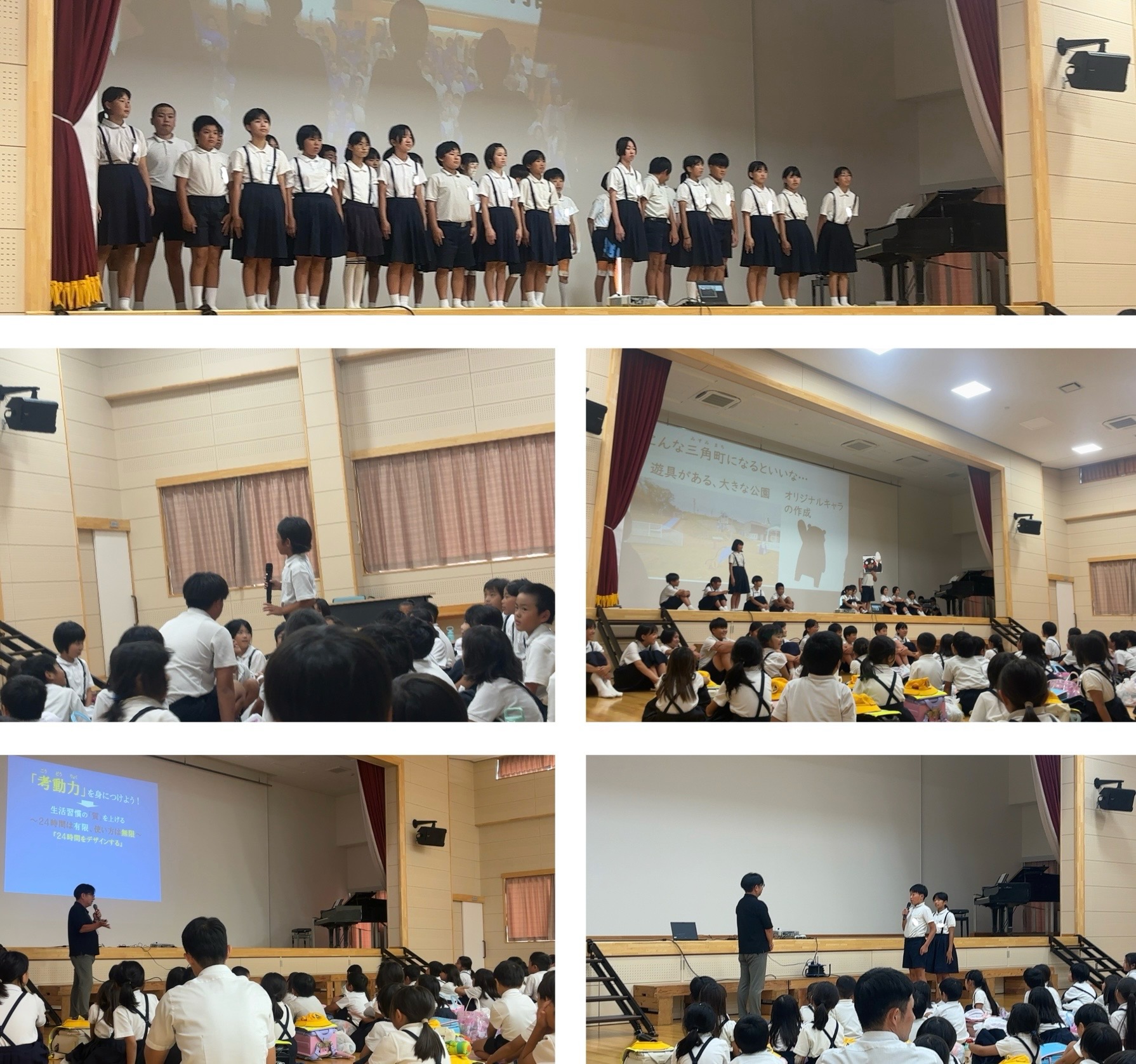 集会後に6年生の合唱発表、来校された天草サーカスさんのショーが披露されました。夏休み前にとても素敵な思い出がたくさんできました。