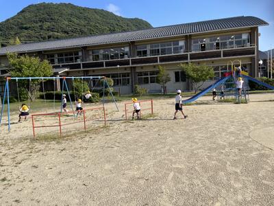 低学年はブランコとすべり台 いい光景です。