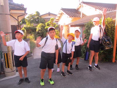 3連休も終わり、本日は今週の登校初日です。朝暑い中元気に登校です。
