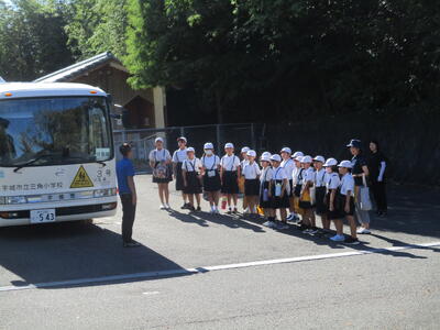 4年生はクリーンセンター見学へ出発! 運転手さんへのあいさつ
