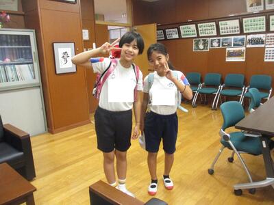 放課後校長室で仕事をしていたら、かわいいお客様が来室してくれました。「校長先生、さようなら~」と心が温かくなるあいさつでした。6年生の2人組です。