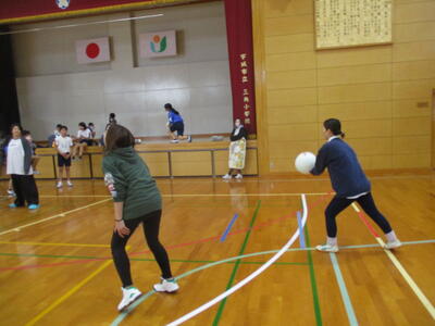 本日、6年生は保護者に来校いただき親子体育などをして楽しみました。あるお母さんと話ができましたが、笑顔で「ソフトバレーボールは上手じゃないけど、楽しい~」と言われてました。親子で楽しく学習ができたことは幸いです。保護者の方々ありがとうございました。