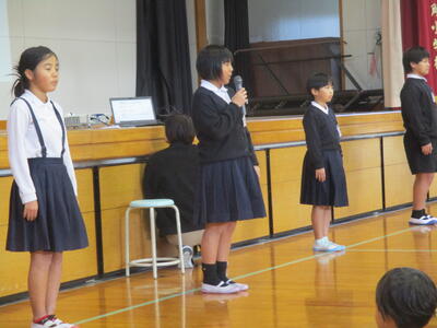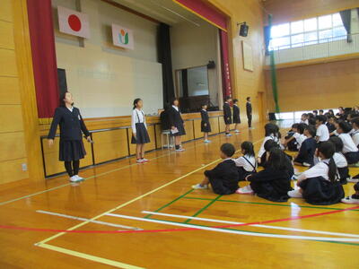 また、集会の態度も皆いいです。発表練習もしっかりやっています。片付けも6年生が真っ先に動いて、いすの片付けやカーテン、窓しめなど自分たちで動いて短時間でやります。見ていてとても気持ちがいいです。自慢できる子どもたちです。