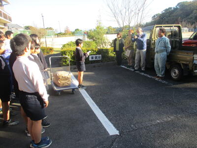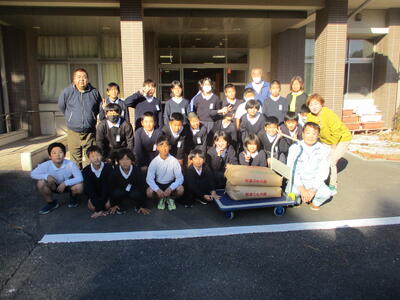 本日の夕方、田植えや稲刈りでお世話になった池田さんや櫻井さん、木村さんが来校くださり、約60Kgのもち米を持ってきてくださいました。5年生の子どもたちは、大喜びで池田さん方と一緒に写真を撮りました。