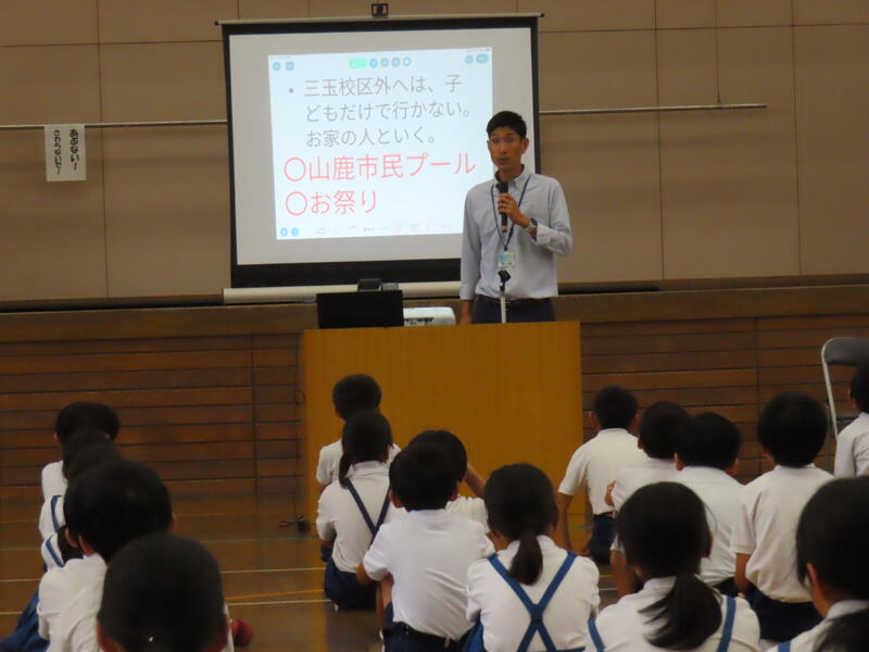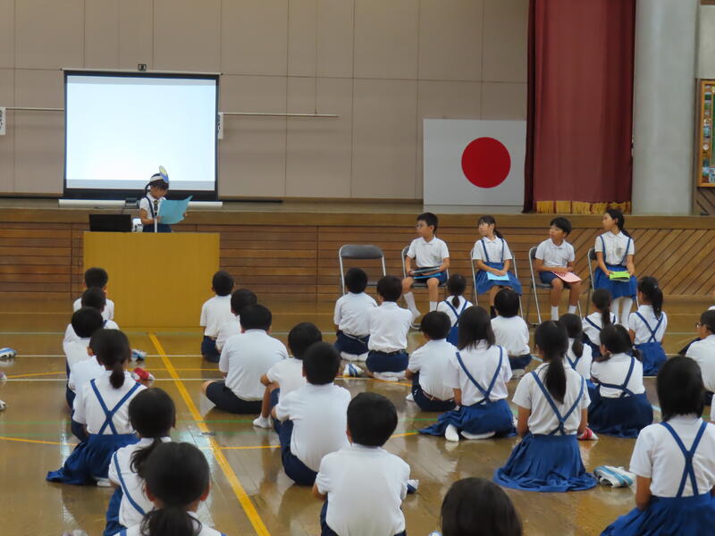 12月24日(水)に終業式がありました。山鹿市美術展などの表彰の後、各学年代表の作文発表(2・4・6年、すまいる学級)がありました。作文発表では、2学期に頑張ったことや心に残ったこと、3学期の目標などを堂々と発表してくれました。校長先生からの話では、各学年の2学期の姿をたくさん褒められました。さらに、冬休みには読書や家のお手伝いをしましょうという話がありました。また、生徒指導担当からの話では、年末年始を安全に過ごすためのきまりの確認や冬休み中も規則正しい生活を送ろうという話がありました。