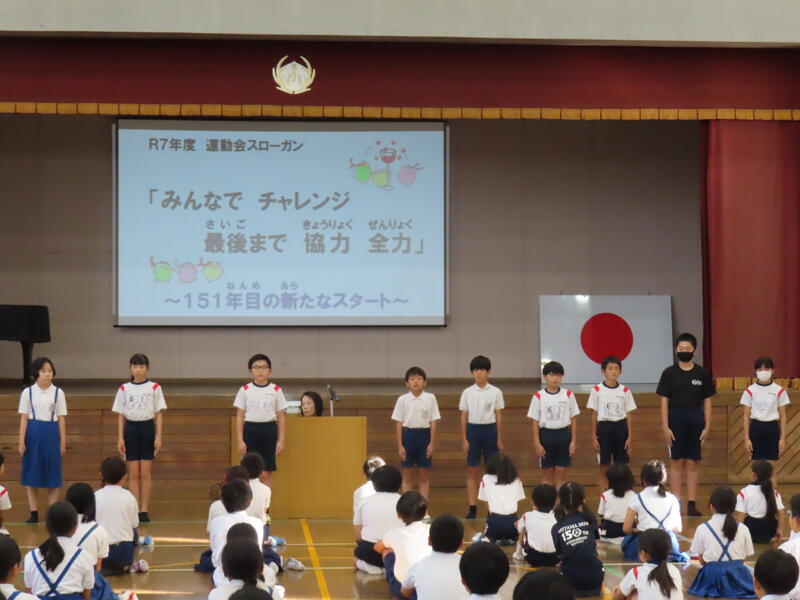 今年度の運動会スローガン「みんなでチャレンジ 最後まで 協力 全力 ~151年目の新たなスタート~」のように運動会成功に向けて全員で協力しながら、三玉小学校の新たな1ページを刻めるよう練習も全力で頑張ります。
