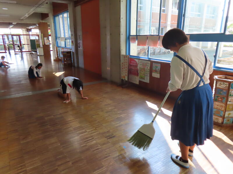 縦割り班掃除では、上級生が下級生に掃除の仕方を教えたり、下級生が上級生の掃除を行う姿から学んだりするなどのメリットがあります。今回の縦割り班掃除でも学年関係なく無言掃除に取り組む姿が見られます。今後も縦割り班掃除の活動を通して、三玉っ子の絆を深めていきます。