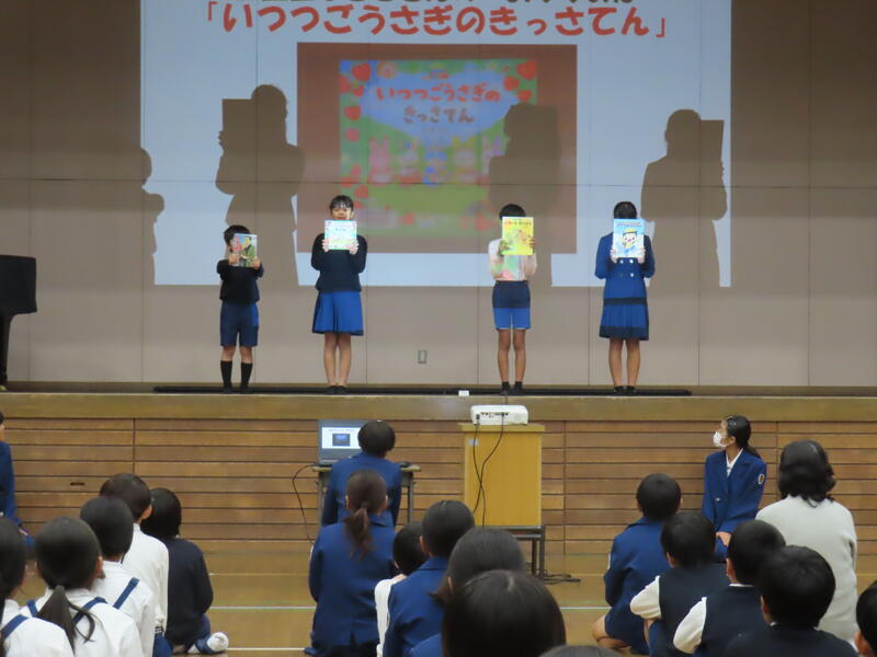 11月12日(水)に児童集会を行いました。今回の児童集会は、図書委員会と運営委員会による発表でした。