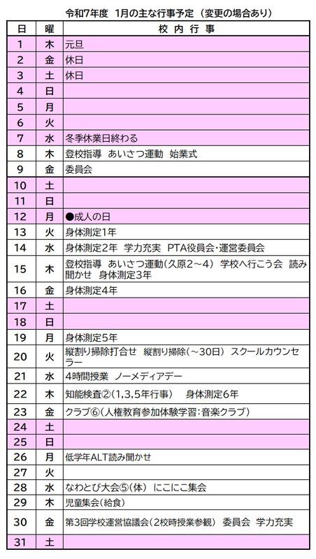 令和7年度 年間行事予定 (4月21日更新)