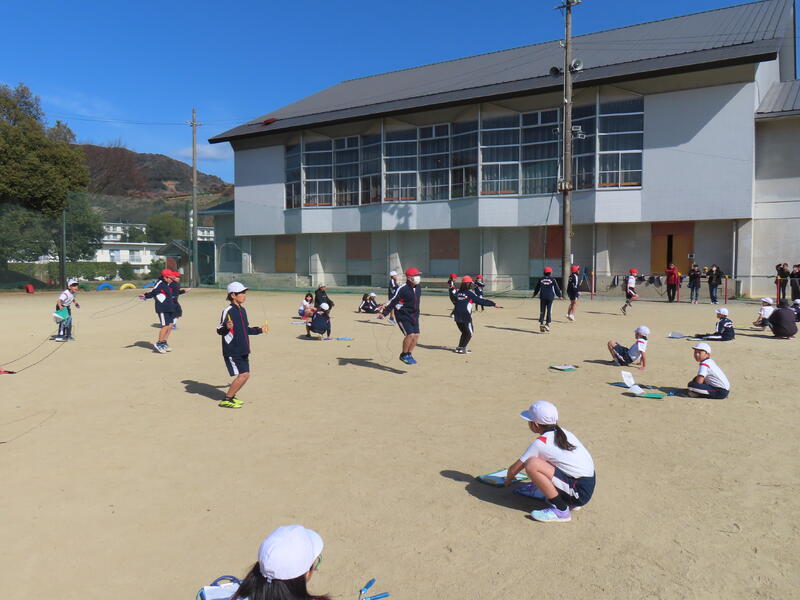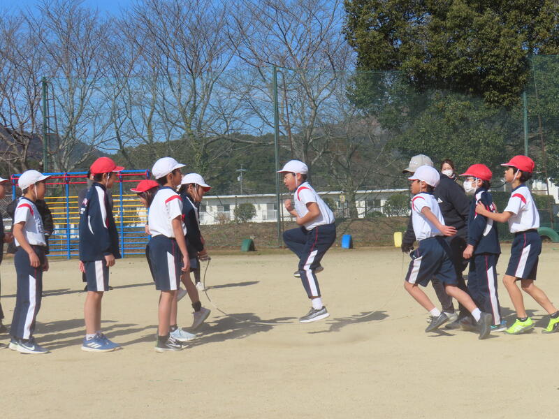 1月28日(木)になわとび大会を実施しました。なわとび大会では、最大3分間の持久跳び、前跳びや二重跳びなどの回数を数える個人種目跳び、そして各学級での8の字跳びを行いました。持久跳びでは1秒でも多く跳ぼうと一生懸命に跳ぶ姿が見られました。また、個人種目跳びではじょれまでの体育の時間に練習してきた跳び方を頑張ることができました。そして、ハッスルタイムや昼休みなどを利用して練習してきた8の字跳びでは、各クラスの団結力をいかして、精一杯跳ぶ姿に大変盛り上がりました。