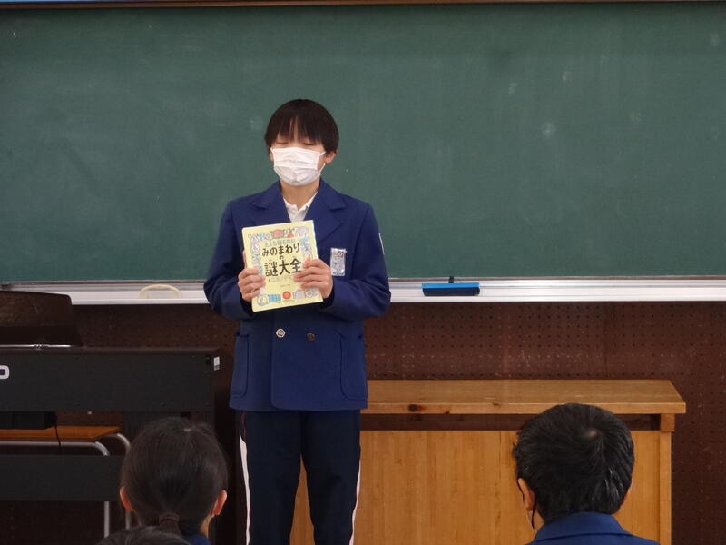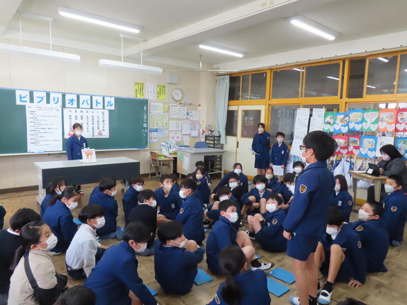 また、本校では1月下旬から2月上旬にかけて低・中・高学年に分かれてビブリオバトルを実施しました。ビブリオバトルとは、発表者がおすすめの本を持ち寄ってその本の魅力を紹介し、参加者全員で「一番読みたくなった本」(チャンプ本)を決定するものです。各学年の代表児童がおすすめの本を提示し、どのようなところが面白かったのかなどを分かりやすく紹介してくれました。どの学年の代表者も自分の考えや思いを相手に一生懸命伝えようとする姿に感動しました。