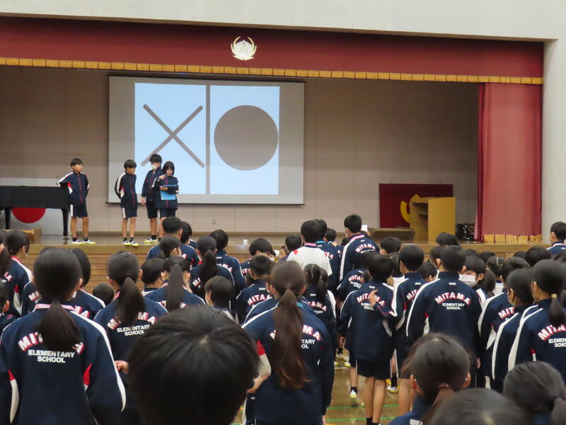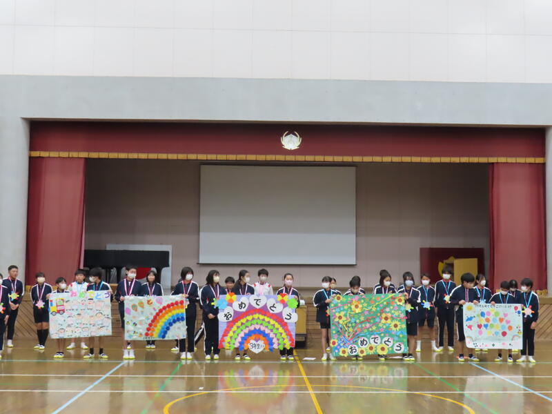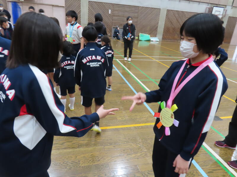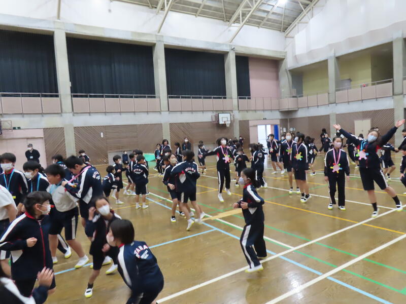 3月6日(金)にお別れ集会がありました。残念ながら雨のためお別れ遠足は中止となりましたが、体育館でお別れ集会を行いました。1年生から卒業を祝うメダルをもらった後、5年生が企画したレクリエーション(うさぎやペンギンに変身する「進化ジャンケン」、音楽に合わせて踊ったり止まったりする「フリーズチャレンジ」、三玉小学校に関するクイズを出題する「〇✕クイズ」)を楽しみました。その後、在校生から6年生に広用紙に書いたメッセージを送り、6年生から感謝のメッセージがありました。そして、縦割り班で待ちに待ったお弁当を食べ、6年生と楽しい時間を過ごすことができました。