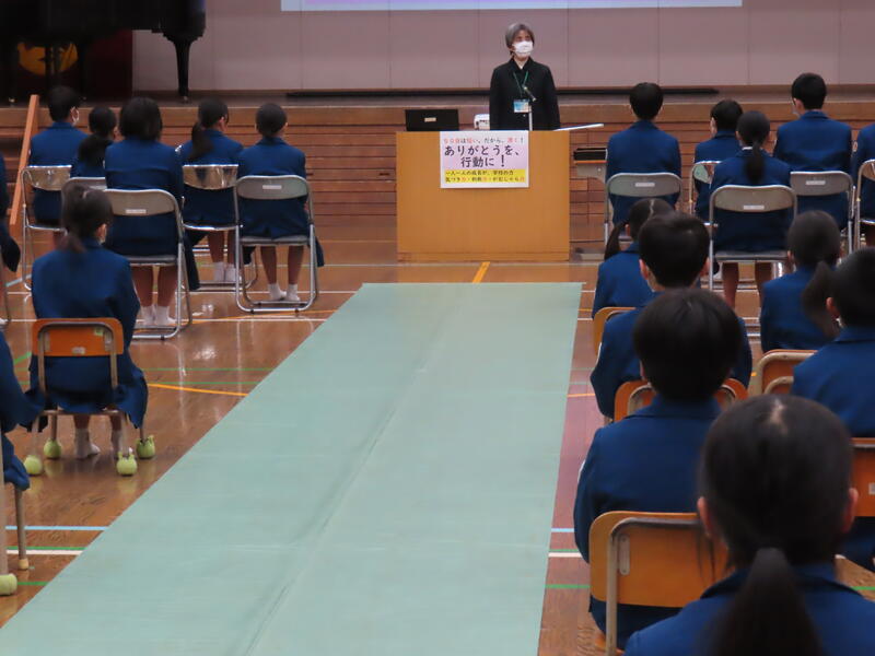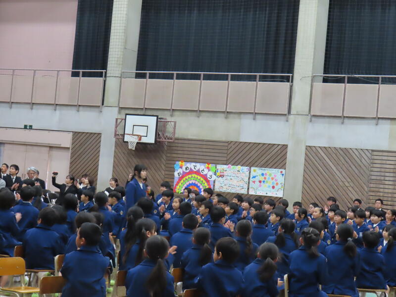 2つ目は、「感謝を伝える会(謝恩会)」です。3月13日(金)の放課後に、6年生が先生方を招待して謝恩会を行ってくれました。合奏や「私は誰でしょうクイズ」のゲームなど様々な楽しい企画を行ってくれました。