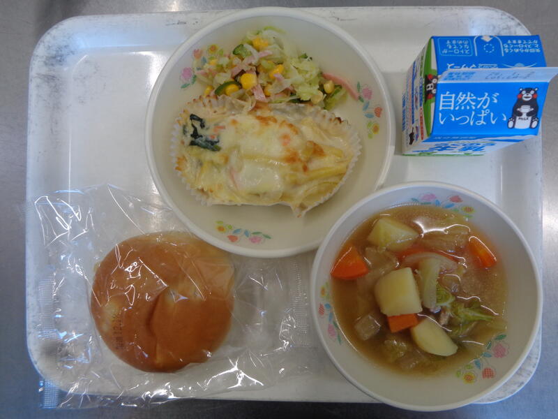 パインパン 牛乳 野菜のスープ煮 マカロニグラタン コーンサラダ