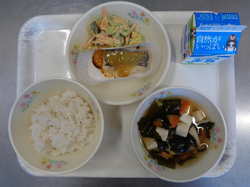 麦ご飯 牛乳 豆腐のすまし汁 魚の柚みそかけ かぼちゃサラダ