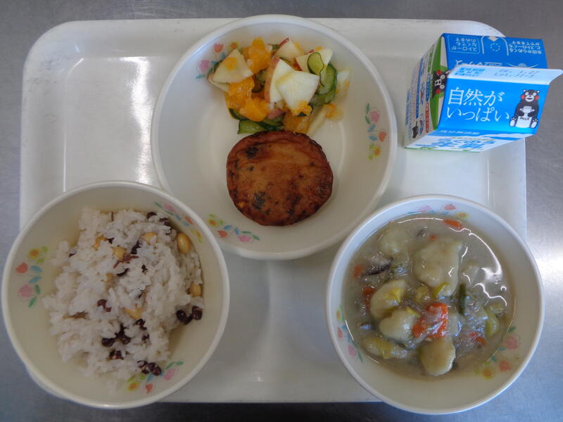 麦ご飯 牛乳 のっぺい汁 松風焼き ゆかり和え