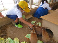 そのような中でも、子ども達は、元気いっぱいです。少し雨が上がると、中庭で遊んだり、うさぎの世話をしたり、工夫して遊んでいます。