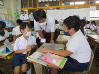本時は、「先生の文をよりよくしよう」という学習課題でした。子ども達は、一人学びで、既習事項を使って先生の文に気付きを書き込み、それを二人組や学級全体で出し合い、気付きを広めていました。