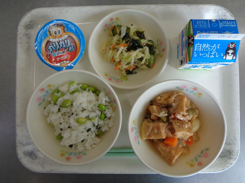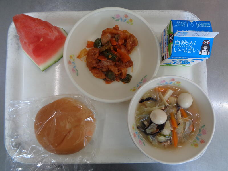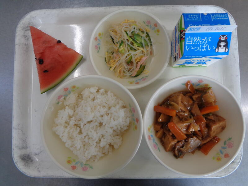 麦ご飯 牛乳 家常豆腐 バンサンスー すいか