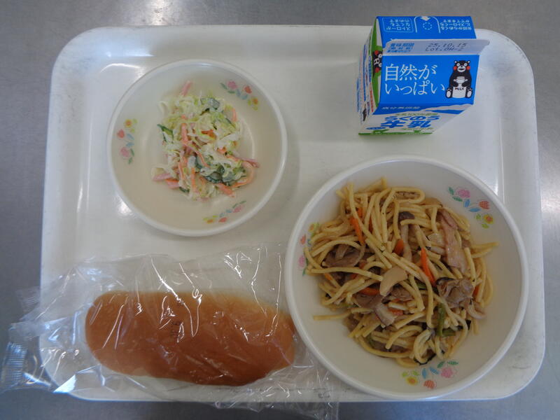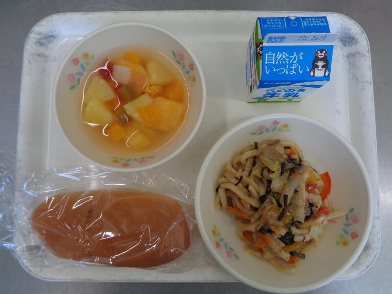 コッペパン 牛乳 焼きうどん フルーツポンチ