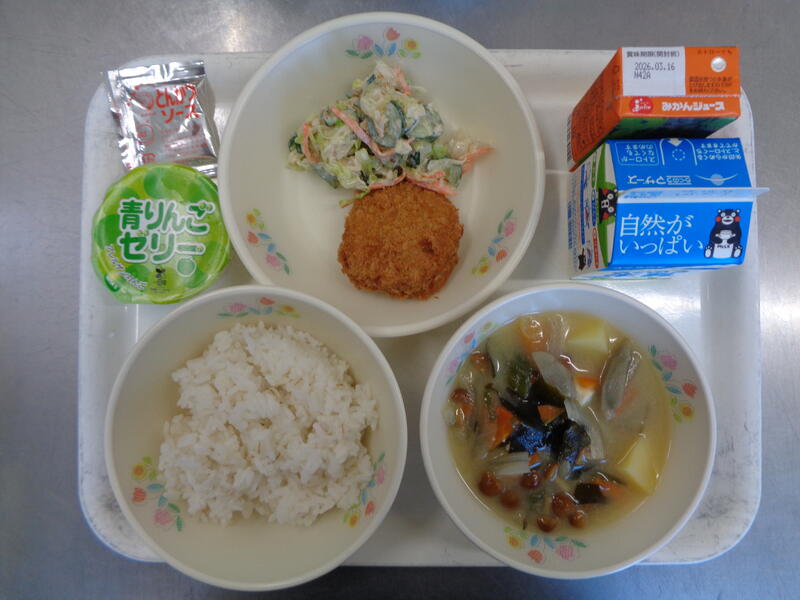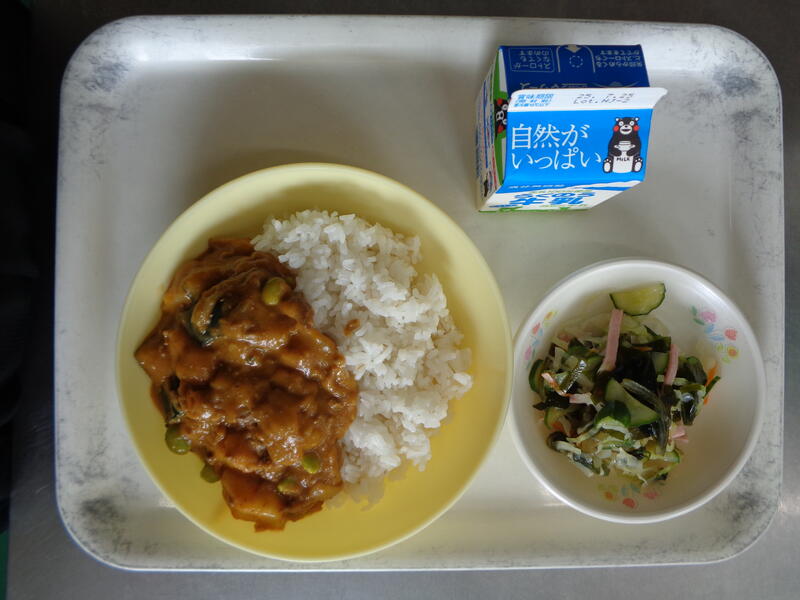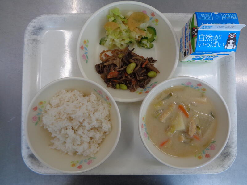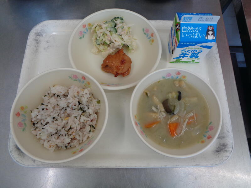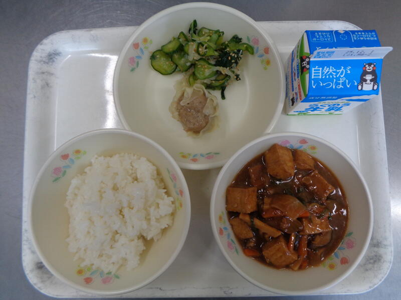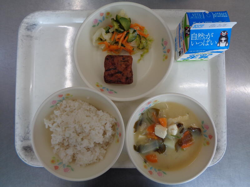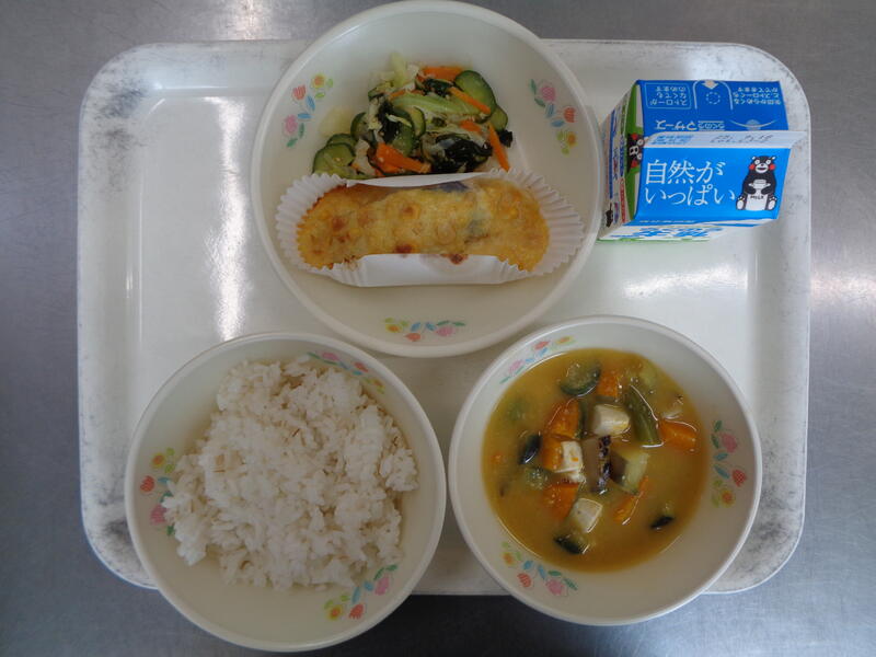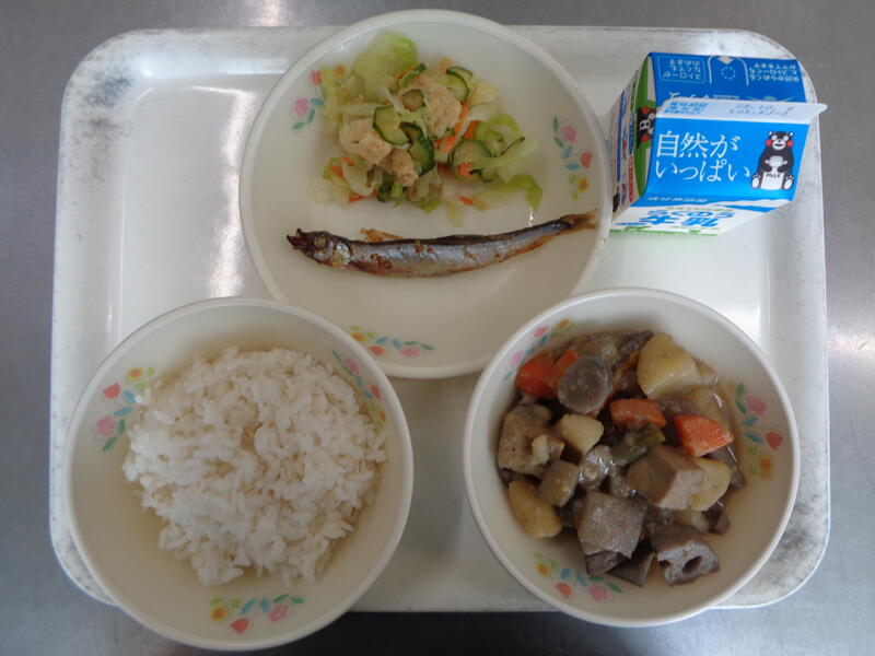 6月は、食育月間です。「食育基本法」が制定されて、今年で20年になります。食育について考える月です。6月は、1日に「牛乳の日」、4日~10日に「歯と口の衛生週間」、「山鹿の日」「ふるさとくまさんデー」と給食でも食について考える献立がたくさん登場します。この機会に食について考えてみましょう。