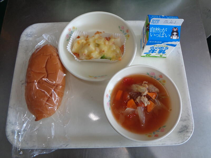 ミルクパン 牛乳 ミネストローネ 鮭のグラタン ももぜりー