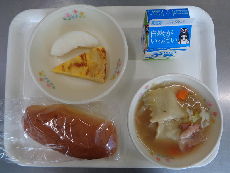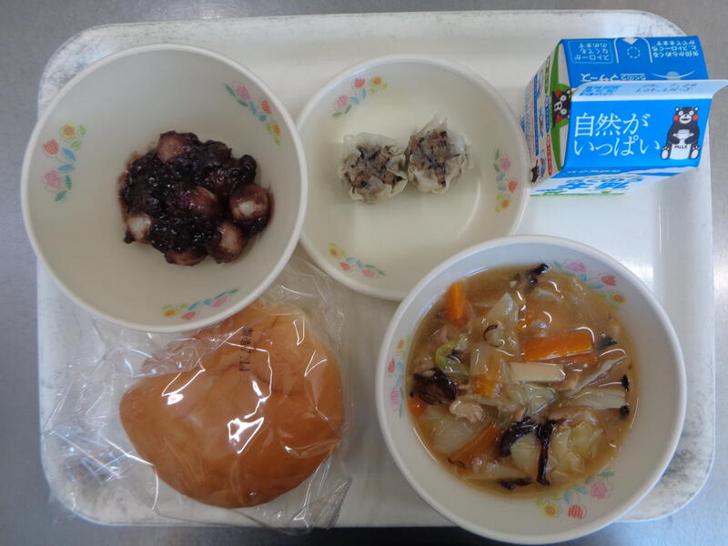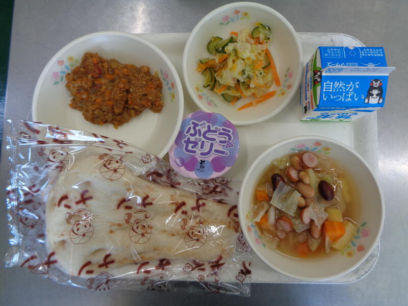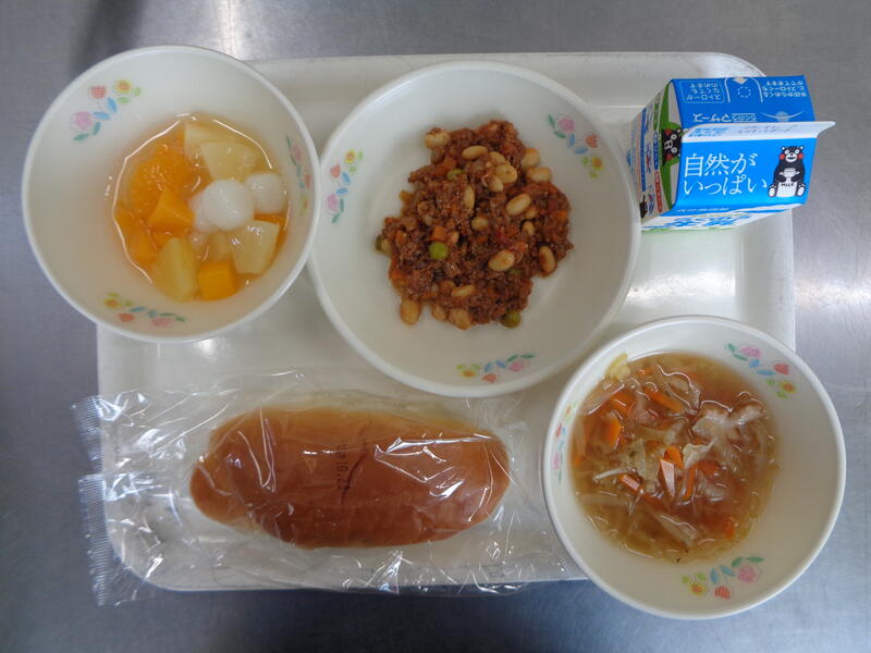 ミルクパン 牛乳 ジュリアンスープ チリコンカン フルーツ白玉