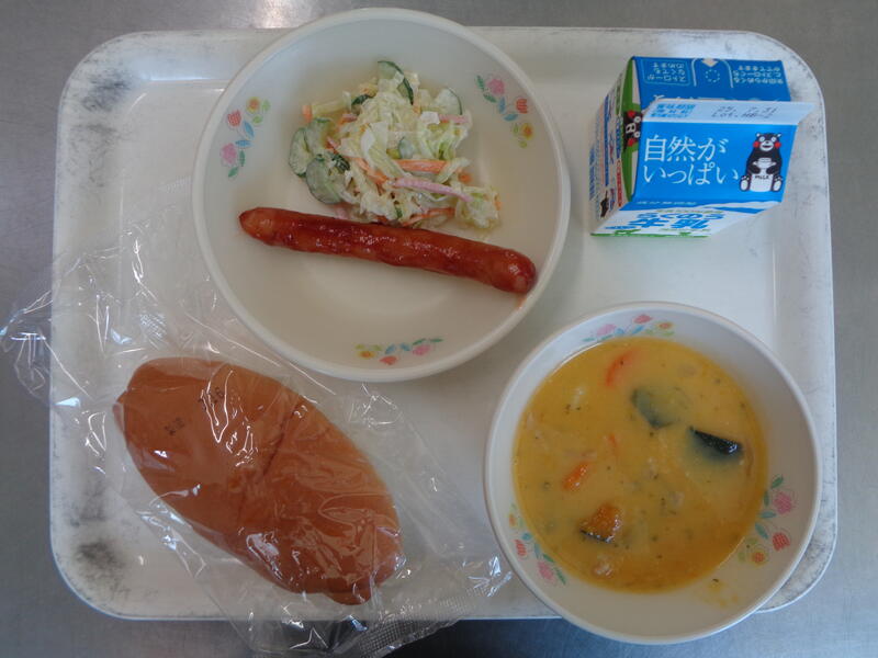 コッペパン 牛乳 コーン入り卵スープ かぼちゃのミートソース