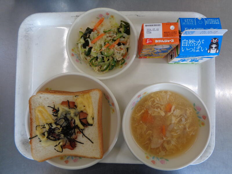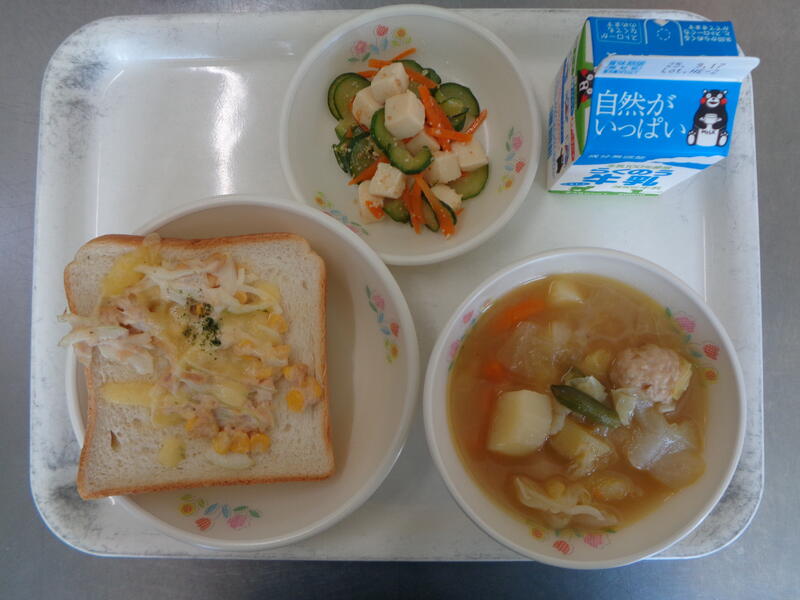カルシウムトースト 牛乳 季節のみそシチュー つなひじきサラダ