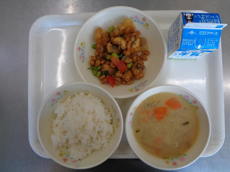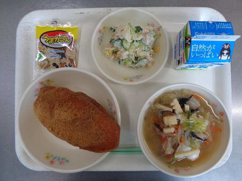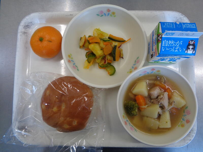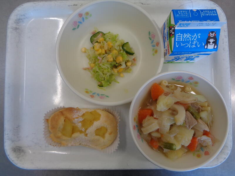 今日は、18日の水曜日の献立と入れ替えました。ポテトグラタンは6年生が収穫してきてくれたじゃが芋を、いつもより多めに使って作ってあります。