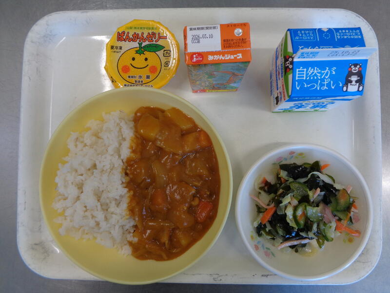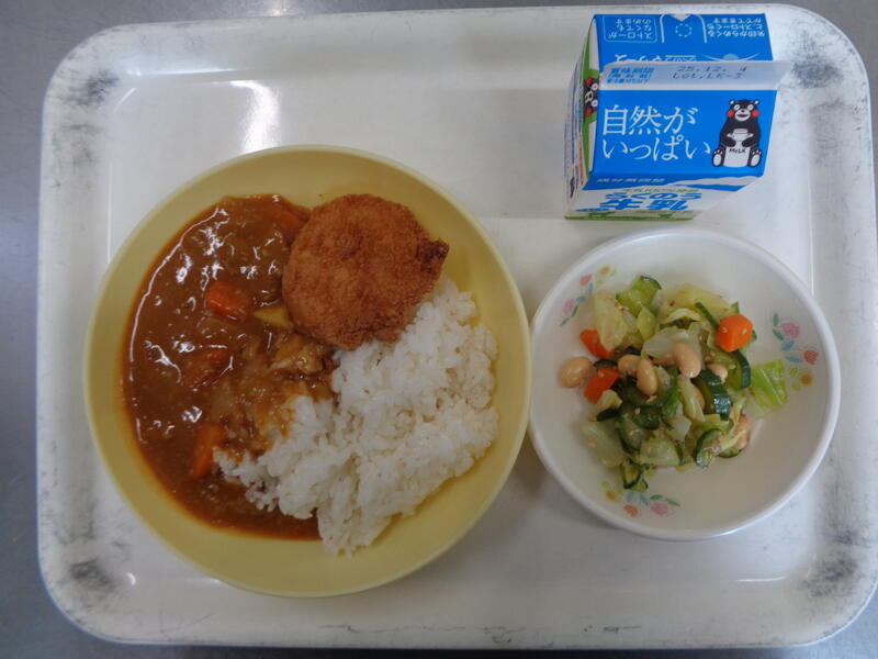 麦ご飯 牛乳 ポークカレー らっきょうサラダ レモンゼリー