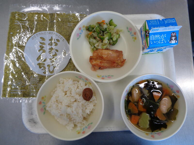 今日は梅干しとのりのおにぎりです。しっかりにぎって食べてくださいね。