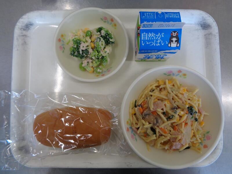 コッペパン 牛乳 クリームスパゲッティ ブロッコリーサラダ