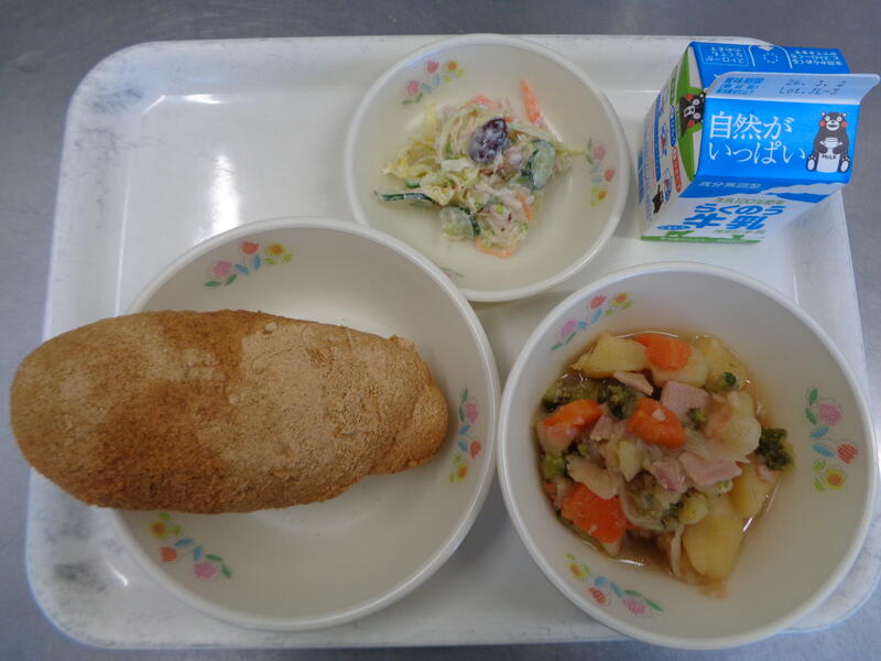 ミルクパン 牛乳 ミネストローネ 鮭のグラタン ももぜりー