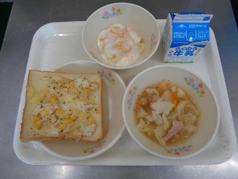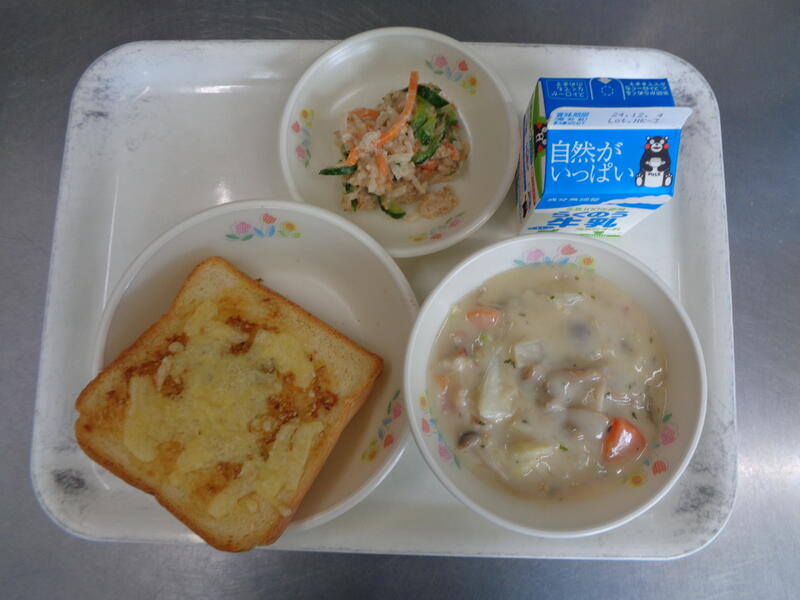 カルシウムトースト 牛乳 秋野菜のシチュー 大根サラダ