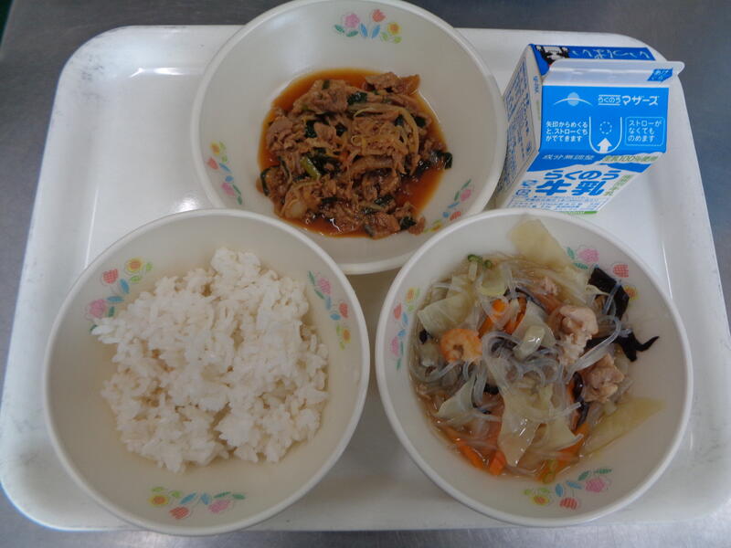 ビビンバ 牛乳 もずくスープ フルーツポンチ