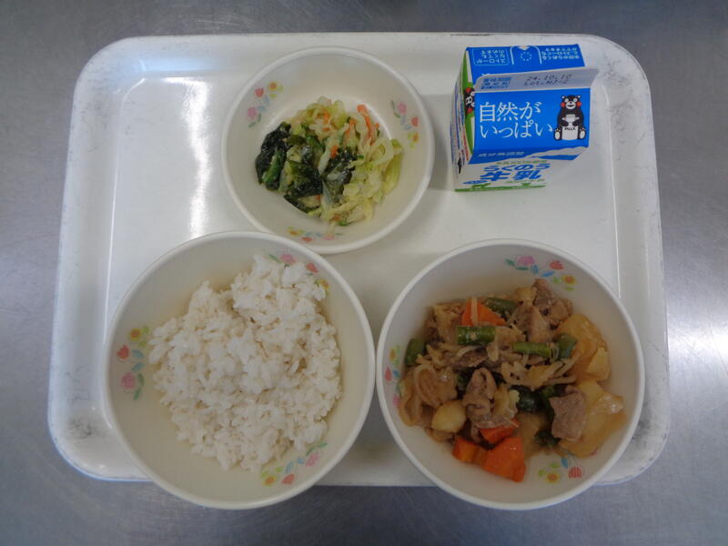 麦ご飯 牛乳 鶏すき焼き きゃべつのごま酢和え