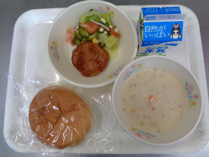 丸パン 牛乳 スーミータン ハンバーグ ナッツサラダ