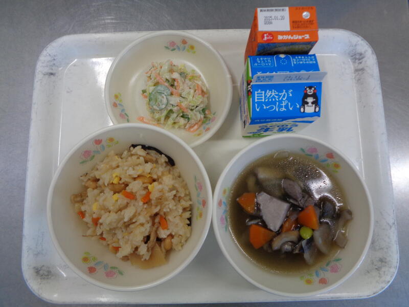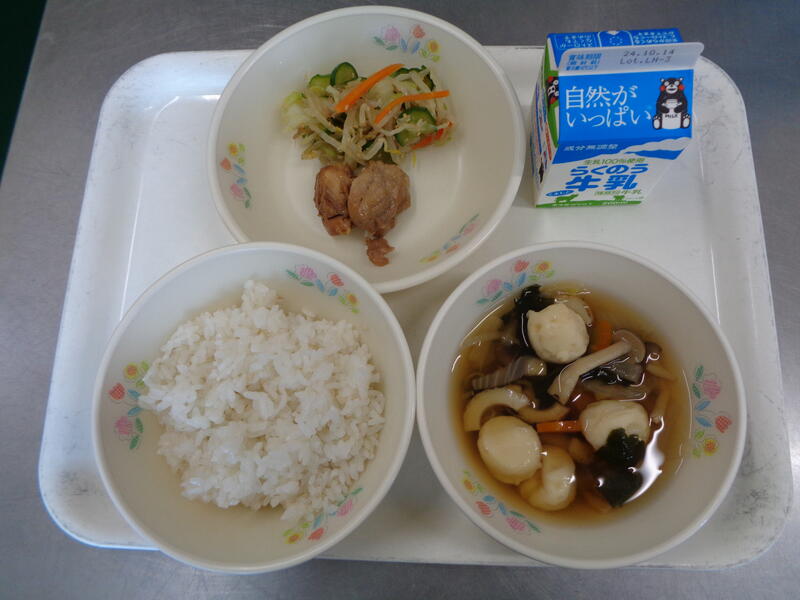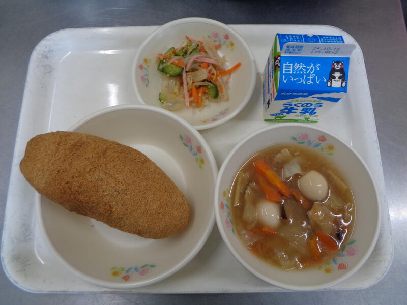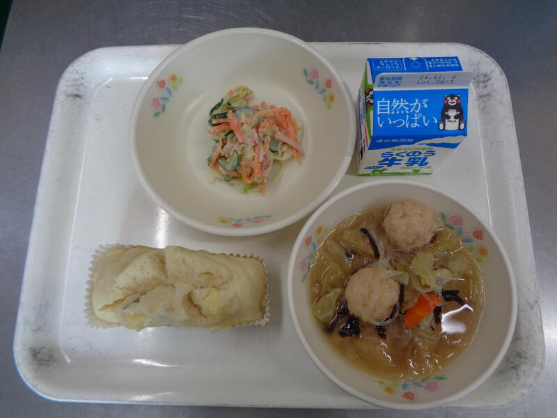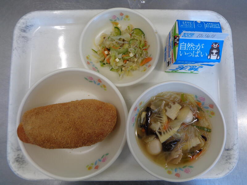びりん飯 牛乳 白玉汁 れんこんサラダ