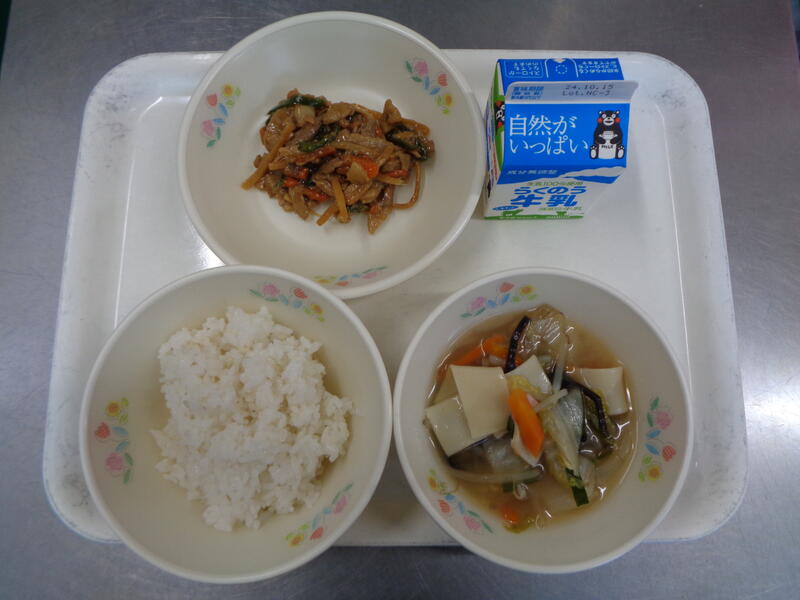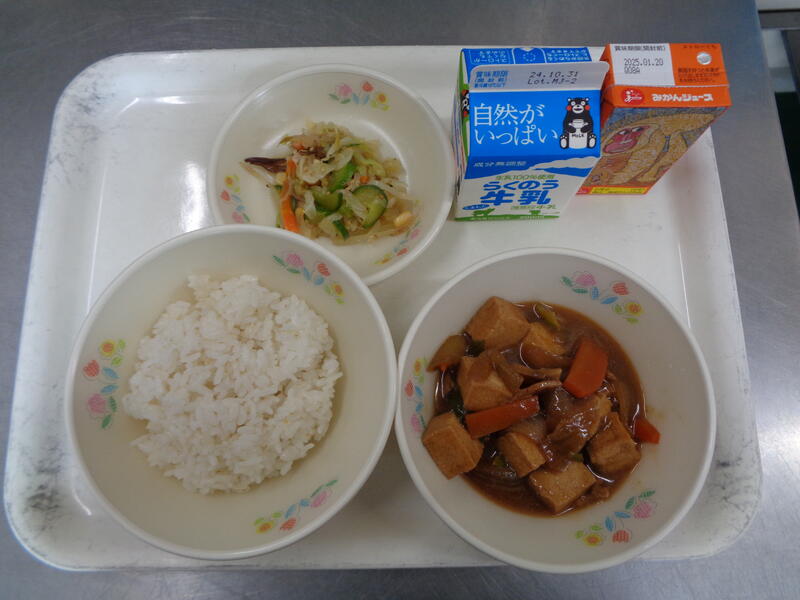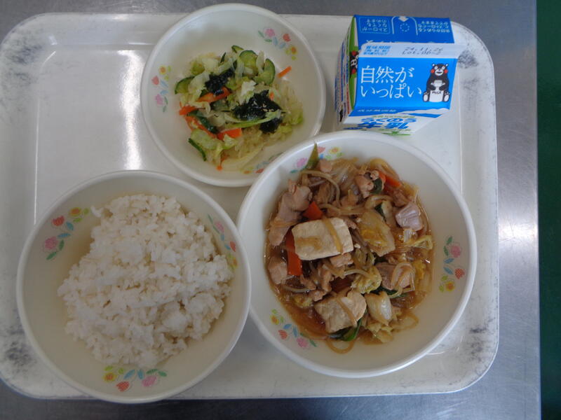 梅ご飯 牛乳 家常豆腐 バンサンスー