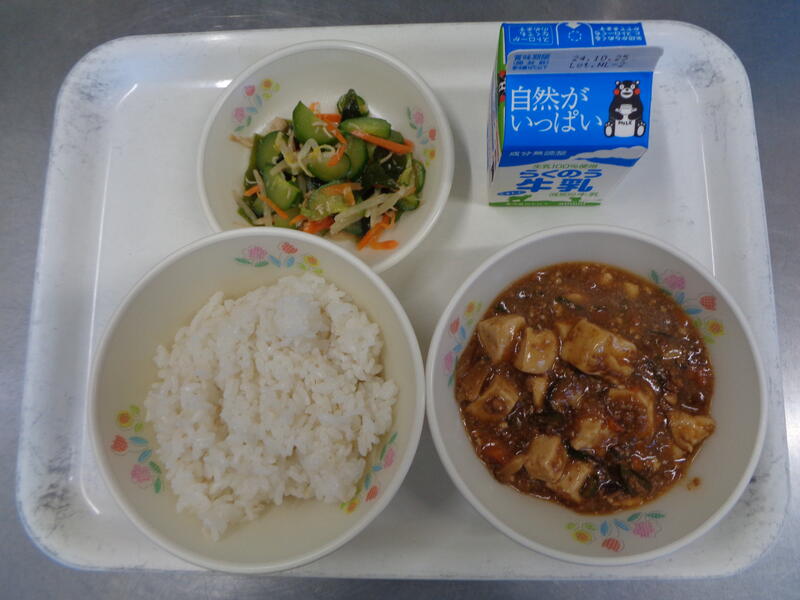 麦ご飯 牛乳 麻婆豆腐 棒々鶏サラダ