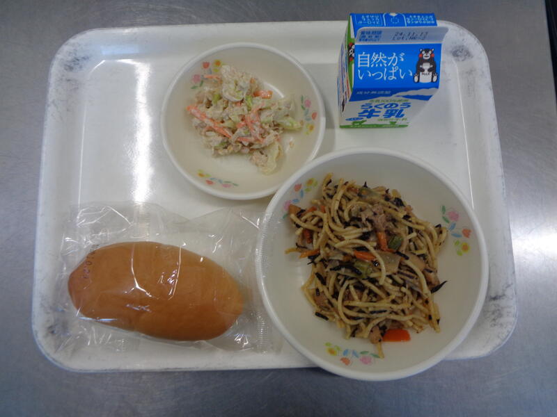 コッペパン 牛乳 ひじきスパゲッティ ごぼうとナッツのサラダ
